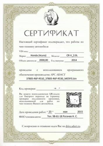 | Чип тюнинг Honda cr-v 2L 2014 г выпуска ЭБУ Keihin New (SH725xx) 37805-R6F-R510_37805-R6F-R530 Установлена прошивка ООО АРС АДПКТ Оптимизированная динамичная версия ПО с сохранением заводских норм токсичности. Чип тюнинг Honda и других марок авто в Волгограде тел. +7917-338-61-18 | |