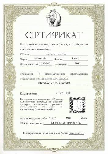 | Здравствуйте! Дорогие друзья! Мы выполнили чип-тюнинг автомобиля Mitsubishi Pajero Sport 2.5DI-D (2013 г.в., двигатель объемом 2.5 литра - турбо дизель, мощностью 178 л.с. и крутящим моментом 350 Нм). В качестве тюнинговой прошивки была выбрана программа от АДАКТ, её автором является Алексей Соколов kstovchanin, под названием "1860B557_04_mod_100500. В среде поклонников внедорожников Mitsubishi, таких как, Pajero, Pajero Sport, L200 с двигателем 2,5 DI-D данная прошивка снискала много положительных отзывов. Ведь помимо увеличения мощности на 35 л.с. и крутящего момента на 70 Нм она: ✔ Уменьшает несогласованность работы автоматической трансмиссии на 2-4 передачах. ✔ Снижает расход топлива при некоторых режимах движения. ✔ Снижает демпфирование педали акселератора. ❗ Данная прошивка не может быть определена как модифицированная с помощью стандартного дилерского сканера. | |